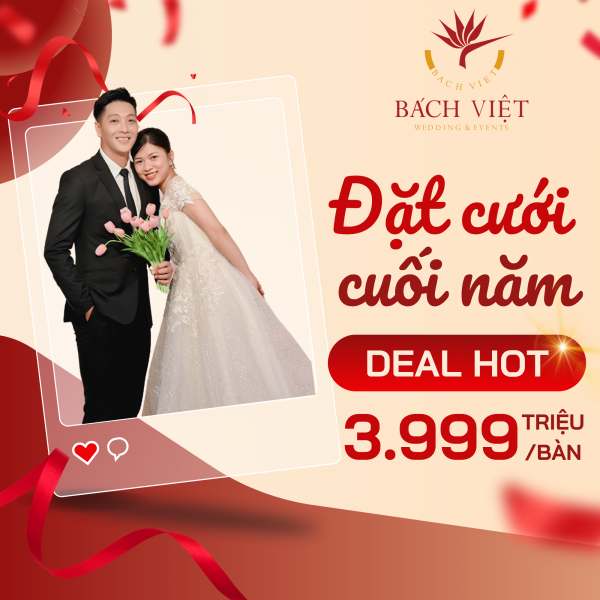 Hiểu điều đó, Bách Việt mang đến gói TIỆC CƯỚI TRỌN GÓI chỉ 3.999.000 VNĐ/bàn – giúp bạn hiện thực hóa đám cưới mơ ước mà không lo phát sinh.